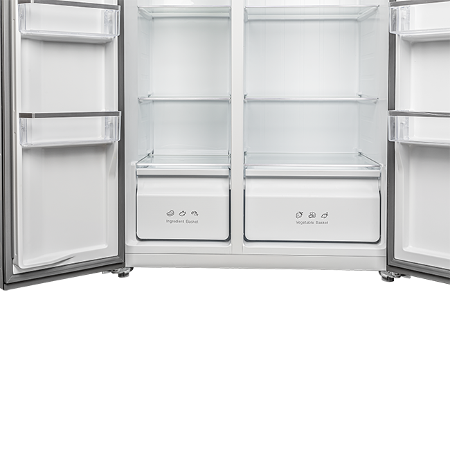 یخچال فریزر ساید بای ساید دارای پنل لمسی با کاربری بسیار آسان است که دسترسی راحت تر برای تنظیمات را برای شما فراهم میکند. آبریز دستگاه به گونه ای طراحی شده که فضای بسیار کمی از داخل درب را اشغال می کند طراحی زیبای آبریز این محصول جلوه ای خاص به آن بخشیده است. دستگیره ها که به صورت توکار طراحی شده اند ضمن اینکه موجب راحتی بیشتر در باز و بسته کردن درب دستگاه می شود، جلوه ای خاص به فضای آشپزخانه می بخشد.